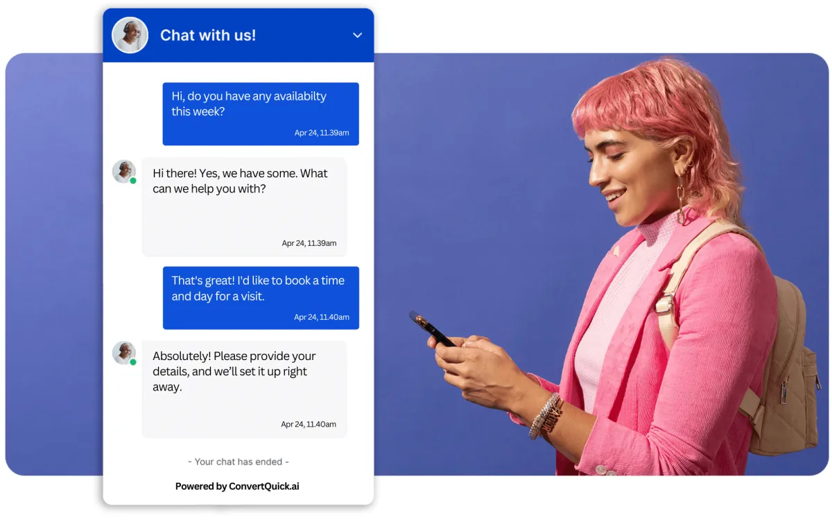 Free up your staff's time and let your AI webchat widget handle questions from your website!